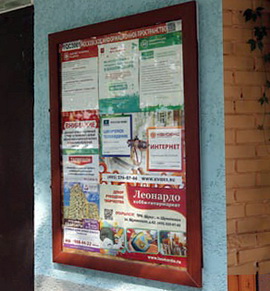 Это городской проект, объединяющий информационные конструкции, установленные на подъездах жилых домов, в единую информационную площадку. Рекламный стенд - это оперативный и ежедневный контакт с населением.